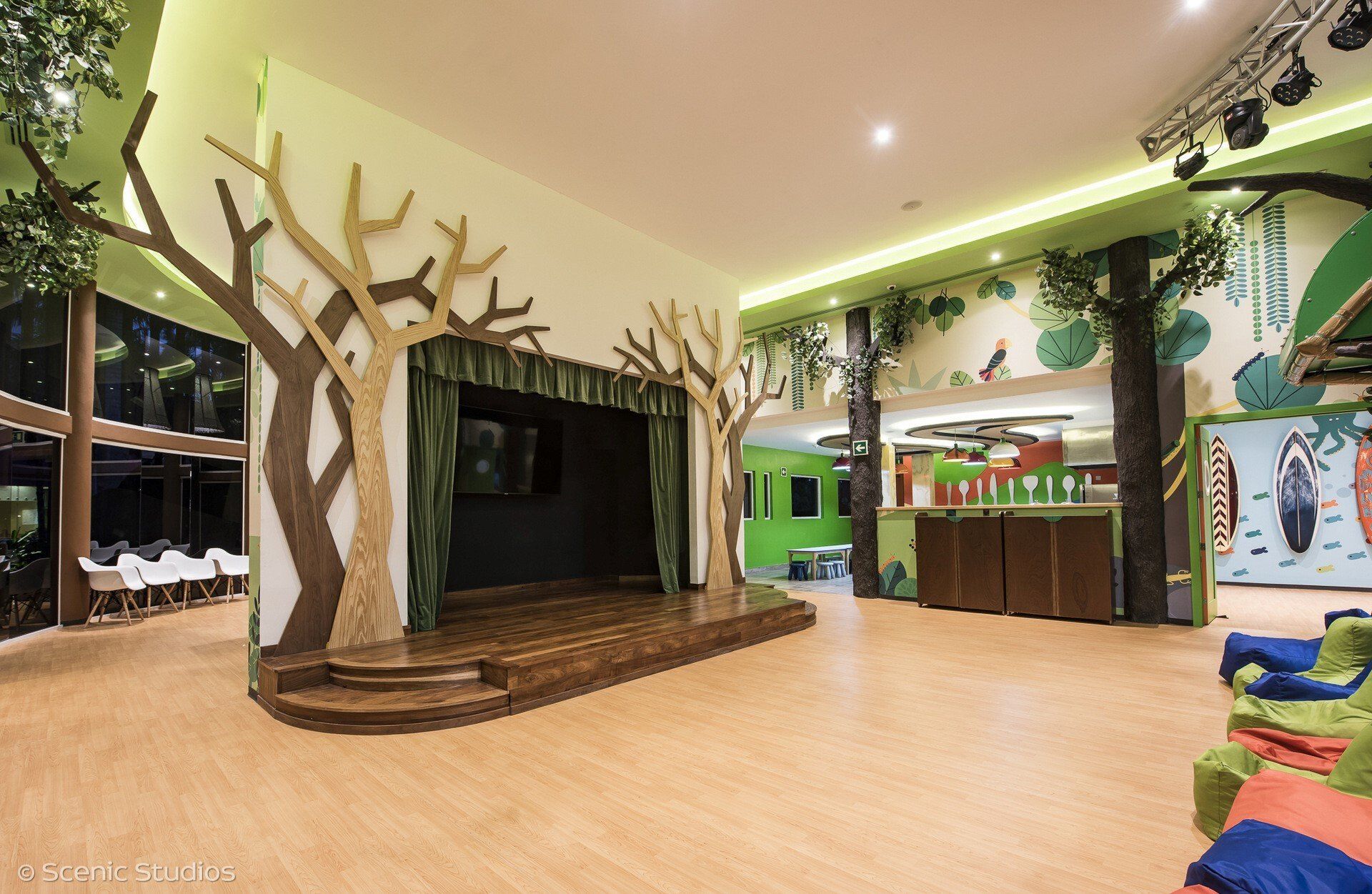 The project was carefully executed as it would reflect the pilot program to be included in its various properties. In the three main areas, each of the activities included in the general program was perfectly integrated, as well as a food consumption area (MINICHEF) specifically designed for integration activities for all age groups.